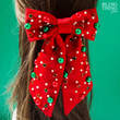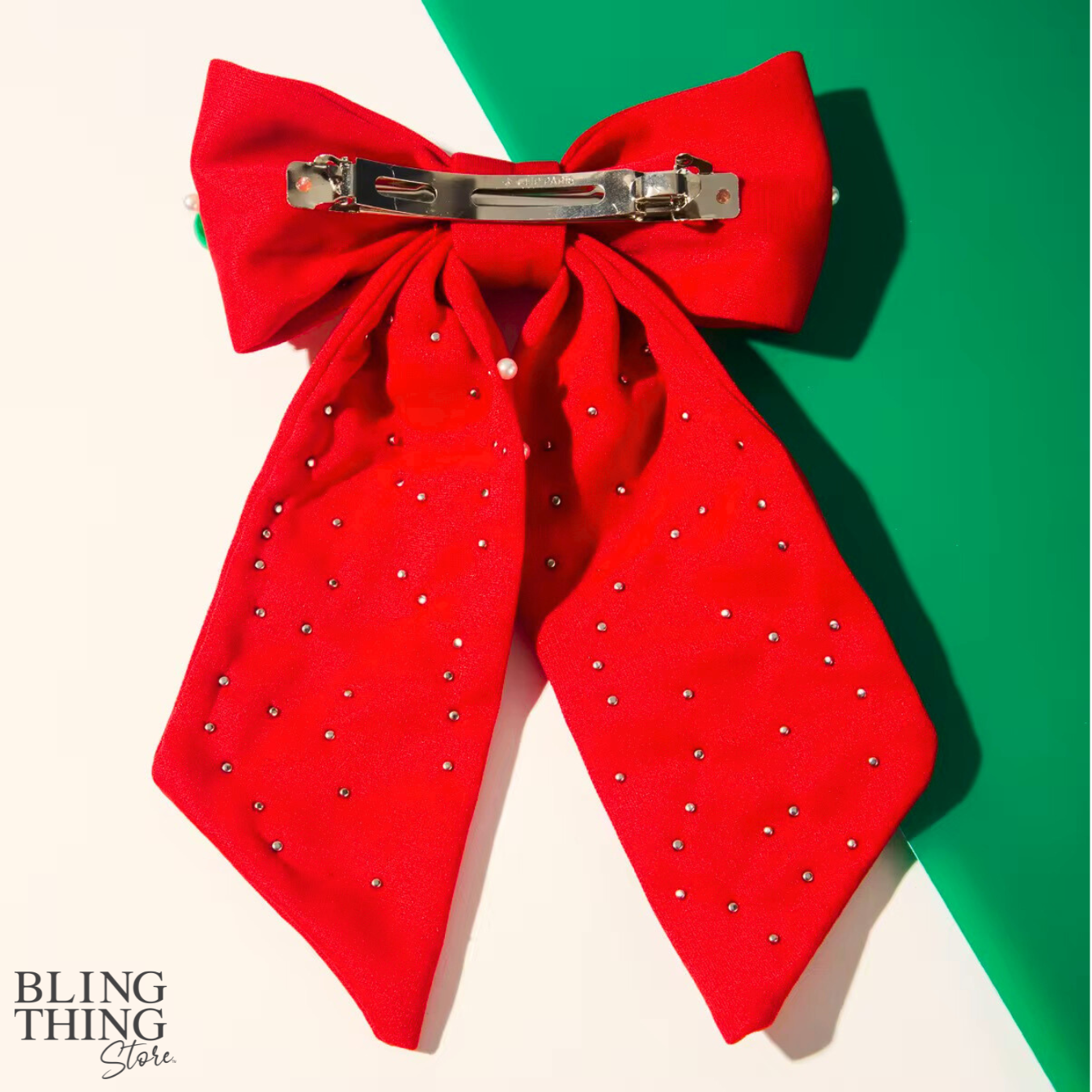 Christmas Noël Luxe Pearl Bow Hair Clip - Red